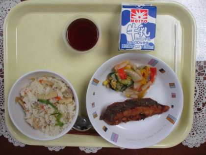 音楽会が終わったタイミングで、次年度開校する「みらい青空学園」の校歌に触れていました。歌詞の長さやリズムが違うことを感じたり、どんな言葉を使っているかを確認したりした後、みんなで歌ってみました。曲や先生の手本歌唱を聞いただけで、なんとなく歌えるようになっていたことに驚きです。 11月26日(水)の給食