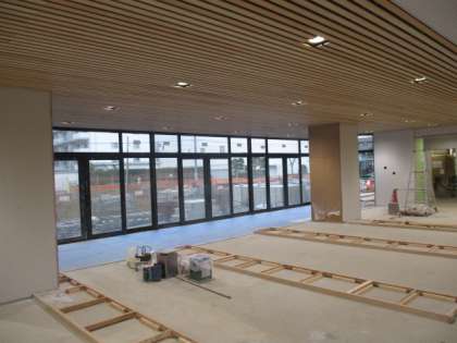 4技能(リーディング、リスニング、ライティング、スピーキング)について測定を行い、英語教育の充実や授業改善に役立てることなどを目的としています。子供たちはとても集中して取り組んでいました。 工事の進捗状況(北棟内部)