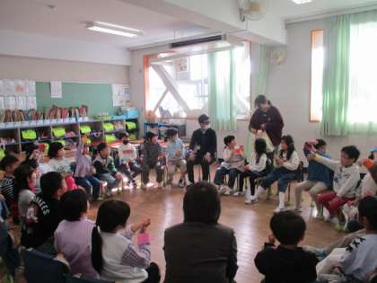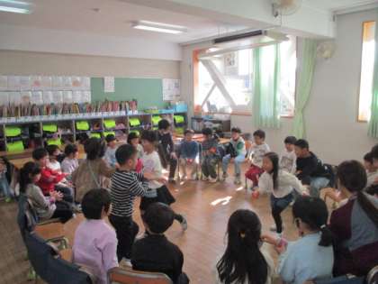 英語の歌をみんなで歌ったり、色の名前を使った「カラーバスケット」をやったりと、英語を使った活動を楽しみました。 工事の進捗状況(北棟)