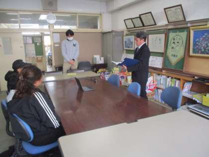 本日も全校朝会をオンラインで行いました。代表の6年生が朝の挨拶をしました看護当番の先生から11月の生活目標と今週の生活目標の話がありました。