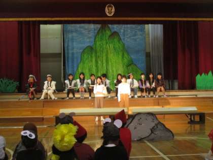 金曜日から6年生は学級閉鎖をしていたため、昨日、今日と、誠に残念ながら、出演も係の活動もできませんでした。その代役を5年生に急きょお願いしましたが、照明担当や大道具担当などなど、5年生がしっかり代役を果たしてくれました。頼もしい5年生でした。6年生のみんなが元気になりましたら、6年生には改めて発表してもらいたいと思います。 各演目、どれもすてきでした。一人一人が緊張しつつも輝いていた学芸会でした。それも、小道具や衣装など保護者の皆様からたくさんの御支援、御協力をいただいたおかげです。ありがとうございました。