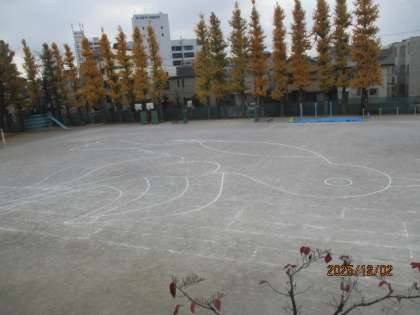 本校85周年としての行事は特別にはありませんでしたので、せめてみんなで集合写真を撮りたいと企画しました。校庭にみんなで立って描くデザインは、子どもたちから募集した中から、未来にはばたく鳥のイメージのものを採用させていただき、他のデザインのものをいくつか合わせて業者さんが最終デザインしたものです。 整列した集合写真もドローンで撮影しました。そちらの集合写真には、今後10日ほどの間に本日欠席した人は個別に撮影しデータを送ることができれば、整列した集合写真に合成していただくことになりました。登校でき次第、撮影し、業者さんに届けますので、本日欠席の人もご安心ください。 業者さんが撮った画像は、合成したものも含め、後日販売のご案内を出させていただきますが、それらの画像の豊二小85周年記念のクリアファイルは後日全員にプレゼントしていただくことになりました。楽しみにしていてください。 大それたことはできませんでしたが、子どもたちの豊二小85周年の思い出となれば幸いです。
