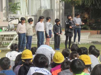 司会を務めるなど、この集会の中心となった代表委員、楽しい芝生クイズを出してくれた芝生委員、最後に鼓笛演奏で盛り上げた6年生など、子供たちの頑張りもあり、心に残る集会になりました。「これからも芝生を大切にしていこう」という気持ちが伝わってきました。
