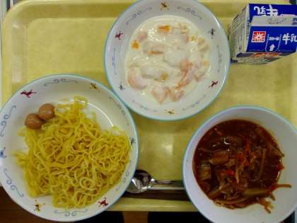 今日の給食 ・牛乳 ・みそラーメン ・うずら煮たまご ・フルーツヨーグルト 今日は2回目のブックメニューの日です。今回は「うどん対ラーメン」という本にちなんで、先週はうどん、今週はラーメンを給食に取り入れました。それぞれの料理の良さを感じてもらえるとうれしいです。 この本には、うどん、ラーメンだけでなく、そば、スパゲティも登場し、楽しい結末が待っています。ぜひ、手に取ってみてください。 避難拠点運営連絡会