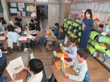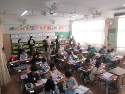令和7年度幼稚園・保育所と小学校の懇談会が本校で行われました。まず幼稚園・保育所の先生方に1年生の授業を参観していただきました。