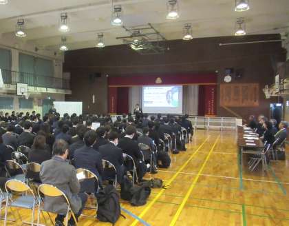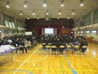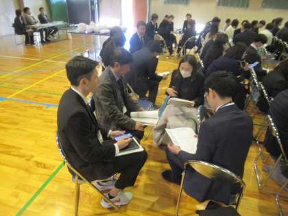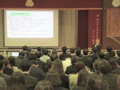 授業参観の後は懇談会です。はじめの全体会では、校長挨拶と事前にいただいていた質問についての説明がありました。