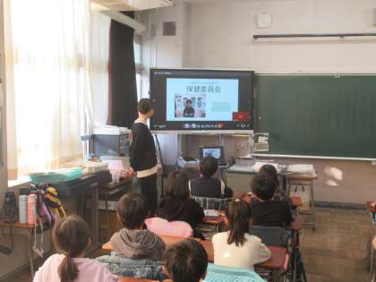 オンラインで短なわ集会を行いました。運動委員会の子供たちがなわとびの持ち方や様々な跳び方のお手本を見せたり、取り組み方についての寸劇をしたりして、全校の子供たちの意欲を高めました。 12月1日(月)から短なわ跳びの推進月間が始まります。運動委員会の子供たちが係となってなわ跳び検定も行う予定です。