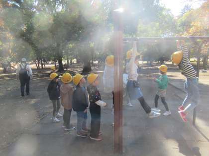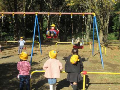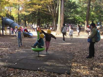 ちびっ子広場にある様々な遊具でたっぷり遊びました。とても楽しそうでした。遊びに来ていた1年生より小さい子供たちに優しく接する姿もたくさん見られました。