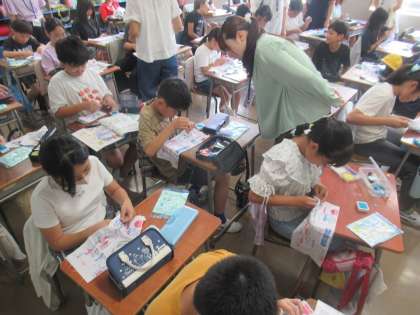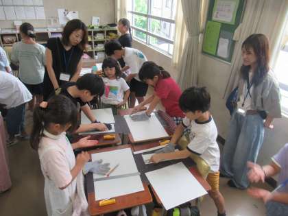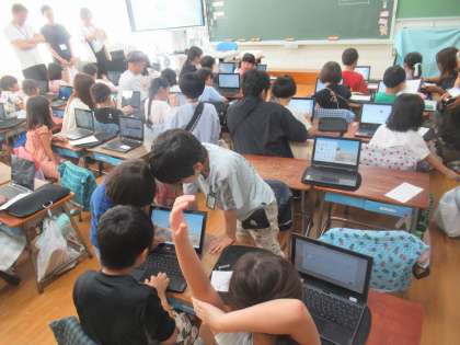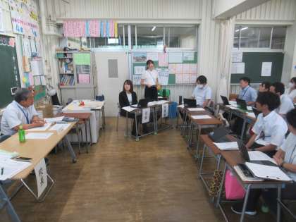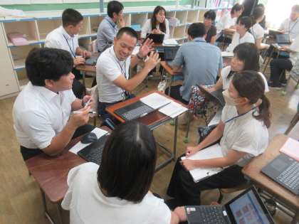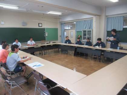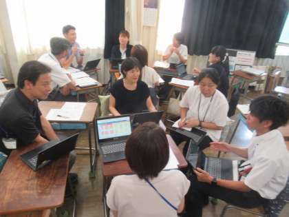 この運動を通して子供たちが味わえる楽しさは何なのか、それを授業者がしっかりと理解してルール、運動する場、用具、チームの人数、時間設定などを工夫して授業をしました。子供たちは夢中になってゲームを楽しんでいました。冷房の効いた体育館でも汗びっしょりでした。ゲームの合間に作戦を確認したり工夫したりする姿も見られました。 ![]() ![]() ![]() ![]() ![]() ![]() 校内研究会1