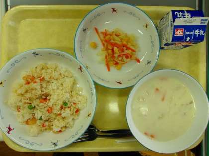 「10より大きい数」という単元の学習です。「10のまとまりと、あといくつ」をキーワードに、ノートに〇をかいたり算数ブロックを使ったりして考え、友達に説明していました。姿勢よく、先生の話をしっかり聞いて、一生懸命学習する1年生の姿が印象的でした。 ![]() ![]() ![]() ![]() ![]() ![]() 9月16日(火)![]() ![]() 今日の給食 ・牛乳 ・シーフードピラフ ・米粉のクリームスープ ・コールスローサラダ 「米粉のクリームスープ」には、お米を粉にした「米粉」が使われています。米粉を入れることで、なめらかなとろみのある汁に仕上がります。 「コールスローサラダ」は、キャベツ、にんじん、コーンを、ドレッシングであえた料理です。ドレッシングは、酢、米油、塩、こしょう、砂糖、からし、たまねぎを使って作りました。 表彰