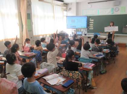 「なりたい自分にチェンジ!」という学習の様子です。アンケートの結果から、クラスの仲間が友達についてどう考えているかを知り、自分はどんな人になりたいかを考えました。5年生は、今の自分がどのように友達と関わっているかをしっかりと振り返り、なりたい自分とそのために気を付けることを前向きに考えていました。 ![]() ![]() ![]() ![]() ![]() ![]() 国語(1年)