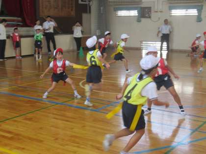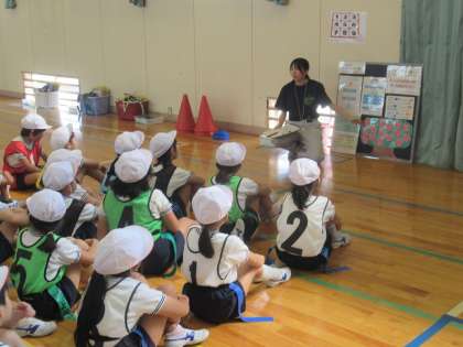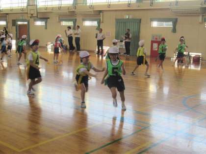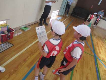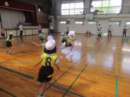 「どれみのうた」を聴きながら階名に親しむ学習です。はじめに階名の中から3つ選んで歌った後、どれみの体操をしながら歌いました。子供たちの表情や歌声がとても明るく楽しそうだったのが印象的でした。後半は鍵盤ハーモニカで「メリーさんのひつじ」を吹きました。 ![]() ![]() ![]() ![]() ![]() ![]() 体育(2年)