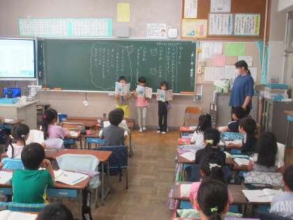 「なりたい自分にチェンジ!」という学習の様子です。アンケートの結果から、クラスの仲間が友達についてどう考えているかを知り、自分はどんな人になりたいかを考えました。5年生は、今の自分がどのように友達と関わっているかをしっかりと振り返り、なりたい自分とそのために気を付けることを前向きに考えていました。 ![]() ![]() ![]() ![]() ![]() ![]() 国語(1年)