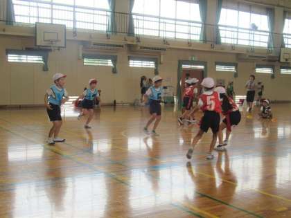 「どれみのうた」を聴きながら階名に親しむ学習です。はじめに階名の中から3つ選んで歌った後、どれみの体操をしながら歌いました。子供たちの表情や歌声がとても明るく楽しそうだったのが印象的でした。後半は鍵盤ハーモニカで「メリーさんのひつじ」を吹きました。 ![]() ![]() ![]() ![]() ![]() ![]() 体育(2年)
