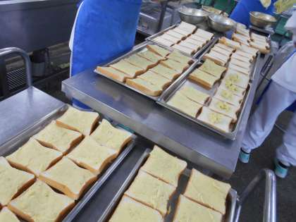 本来は汁気がなく、スペアリブなどの骨付き肉やレバー、ピーナッツペーストが入ります。今日は食べやすいように大きめの豚バラにしたり、ナンプラーを控えめにしたりと給食用にアレンジしました。