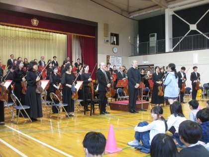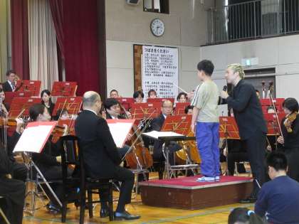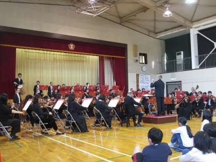 10月23日(木)5・6校時、東京シティ・フィルハーモニック管弦楽団の方々が3〜6年生を対象にオーケストラの演奏を聴かせてくださいました。約70名による生演奏は迫力があり、子供たちはとても真剣に聴いていました。公演の後半には、指揮者体験やオーケストラの演奏に合わせて歌うコーナーもあり、楽しい時間を過ごすことができました。東京シティ・フィルハーモニック管弦楽団の皆様、すてきな演奏をありがとうございました。