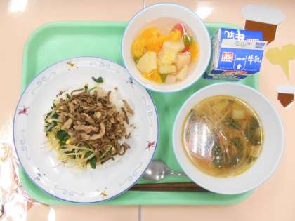 今日は中華料理の献立でした。バンサンスーはわかめやハムなどが入った春雨サラダです。どの料理もよく食べていました!