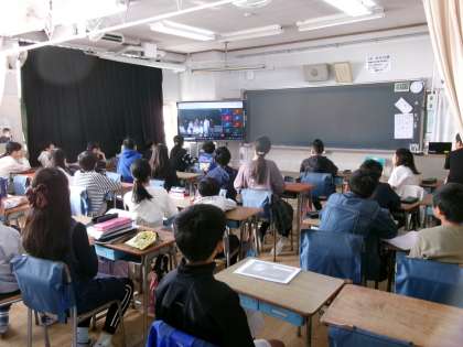 今日の朝は学習発表会の見どころについて、各学年・あおぎり学級の代表児童が紹介をしました。各演目について伝えたいことや見てほしいところの紹介とビデオで録画しました。そのビデオを各学級で見ました。