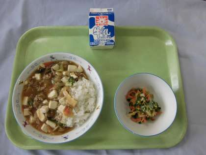 ◆ 麦ごはん ◆ 四川豆腐 ◆ ラーパーサイ ラーパーサイは「辣白菜」と表す中国の料理です。 辛いことを意味する「辣」がつくように、本来は花山椒やラー油などで味付けをするのですが、給食ではラー油をほんの少しだけ使って仕上げています。 しょうゆや酢も入るので、「ぎょうざのタレ」みたいな味、と言われることも多いです。 10月22日の給食