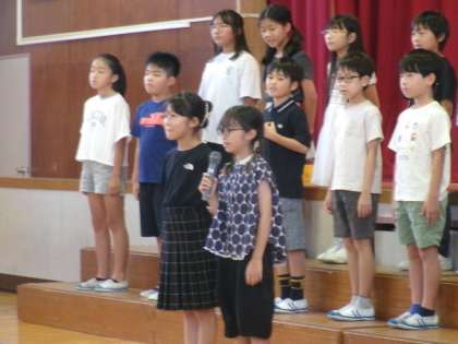 今朝はオンラインで全校朝会を行いました。6年生からは天気の様子を確かめて、外で遊べるときは元気に遊びましょう、水分補給を忘れないようにしましょうと話がありました。