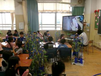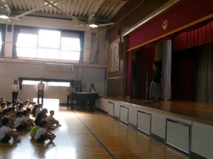 2学期最初のお話の会を開催してくださいました。「子育て幽霊」のお話をしてくださっていました。とても有名なお話ですが、日本各地に似たようなお話があるのだそうです。私も昔、旅行先で「子育て幽霊の飴」というのを見た思い出があります。