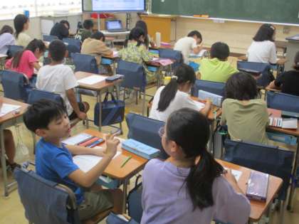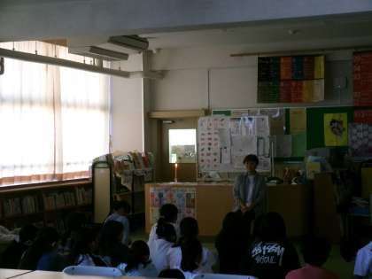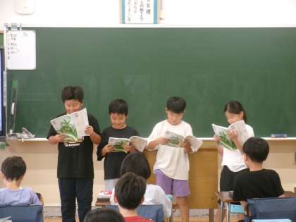 スペイン料理であるパエリアと、ジャガイモなどを具材として調理していただいたスペイン風オムレツ、野菜スープと、スペインを想起させるメニューで統一されています。今日も美味しく食べて、暑さに負けず元気に過ごしましょう。 ![]() ![]() 9/8 おはなしの会(6年生・国語)