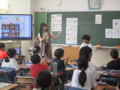 だしがよくきいて、肉や野菜などの具材がたっぷりと入った沢煮椀。とうもろこしご飯は、とうもろこしの甘みが口の中に広がり味も香りを楽しむことができます。大きなしゅうまいも食べ応えがあります。今日もおいしくいただきましょう。 ![]() ![]() 9/9 Do you have a pen?(4年生・外国語活動)