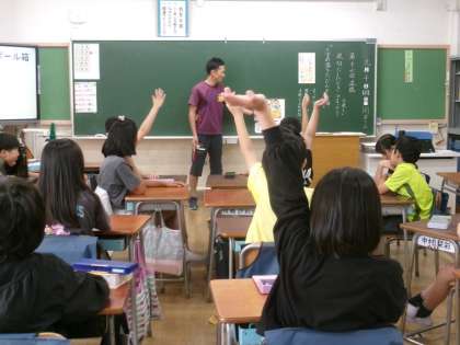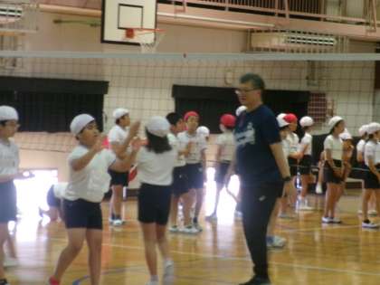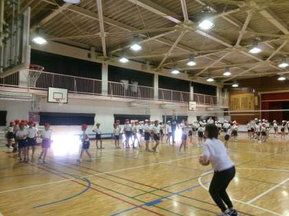 初めて教わる子も多いので、試合の様子をビデオで見て、流れを教わりました。 パス・サーブ・アタックと少人数で練習をしてから試合を行います。点が入る度に大盛り上がりです。みんな楽しい時間を過ごすことができました。 ![]() ![]() ![]() ![]() ![]() ![]() 9/11 キャッチバレーボール教室(4年生)