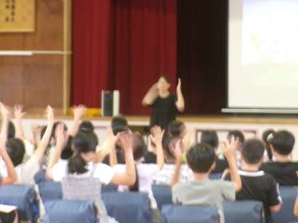 新鮮な野菜の水分をとばしてチップスにしてくださいました。味付けはシンプルに塩味のみで、野菜の甘さがひき立ちます。韓国のおもち「トック」の入ったスープは野菜もたくさんです。同じく具沢山の中華菜飯と一緒に美味しくいただきましょう。 ![]() ![]() 9/10 手話教室(4年生)