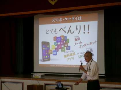 KDDIの方を講師に迎えて、スマホなどによるインターネット活用で注意するべきことを教わりました。便利なものであるけれど、一つかみ合わないことがあったことでつらい思いを体験してしまうことにつながることを、実例をもとにした動画で教えてくださいました。便利だけど、気をつけないといけない。大切なことを教わりました。