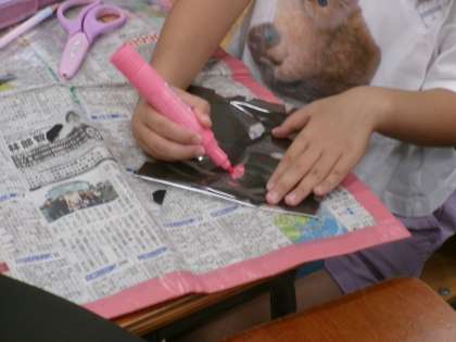 「Do you have a 〜?」のフレーズを使って、身の回りのものについて、会話を楽しみました。