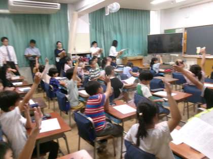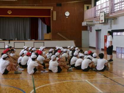2時間目の後半に避難訓練を行いました。久しぶりの真夏日だったこともあり、校庭への非難は行わずに人数確認を行っています。