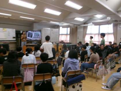 講師をお招きして、「バリアフリーってなんなのだろう」とお話を伺いました。視覚に障害のある講師の先生は、ブラインドサッカーの選手としても活躍されているとのことです。