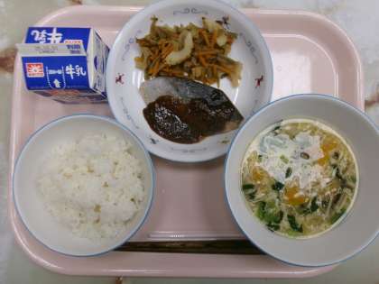 ご飯 魚のごまみそ焼き 野菜きんぴら かきたまきのこ汁