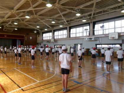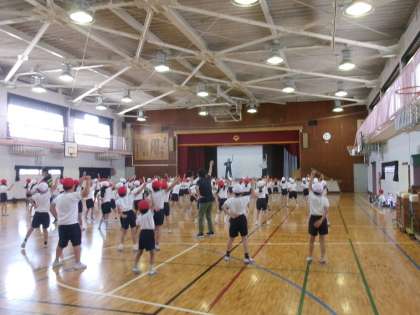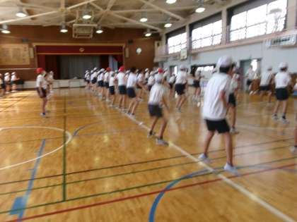 1年生も運動会の表現に向けて動き始めました。曲名は明かせませんが(当日のお楽しみにしてください)、私的にとても懐かしい曲に合わせて元気よく声を出し、振り付けを覚えています。とても楽しそうな声が聞こえる体育館です。