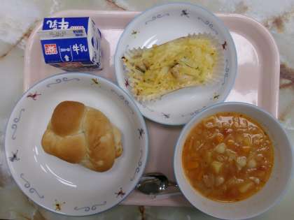 代表委員会の委員長から、運動会のスローガンが発表されました。 生活指導の先生からは、誘い合って元気よく運動しましょうと目標のお話がありました。 ![]() ![]() ![]() ![]() 9/26 今日の給食