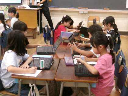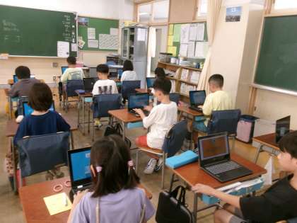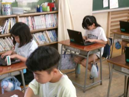 ローマ字の表記について学習したあと、ローマ字入力との違いについて確認しました。その後はタイピングアプリを使ってタイピングの練習です。みんな集中して取組んでいるので、タイピングのキーボードの音だけが聞こえてきます。