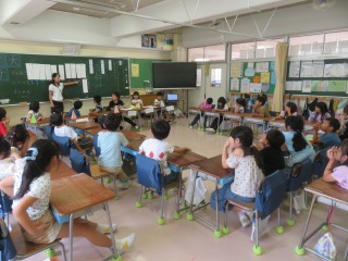 熟議始め![]() ![]() ![]() ![]() ![]() ![]() 板書から 〇議題 きょうしつでできるたのしいあそびをしよう。 〇キーワード たのしい 〇めあて ともだちのはっぴょうをさいごまできこう。 〇話し合うこと きょうしつでやるあそび 司会団(中)の板書カードから ★なんでもばすけっと ★はんかちおとし ★じゃんけんれっしゃ ★トランプ ★しりとり ★いすとりげえむ ★まじかるバナナ ★かもつれっしゃ ★うの ★はないちもんめ ★はしらない(ちゅうい) ★はんでわかれる ★5にんでやる ★10にんでやる 国会議員の向こうを張る勢いです。 6年武石移動教室(3)![]() ![]() ![]() ![]() ![]() ![]() 4つの構えでさらに小学校生活の完遂に向かう子どもたちです。 6年武石移動教室(2)![]() ![]() ![]() ![]() ![]() ![]() 6年武石移動教室(1)![]() ![]() ![]() ![]() ![]() ![]() スローガンのキーワードは協力、挑戦、礼儀・安全です。欲張りでしょうか。いえいえ、最高学年だからこそ、深く高く望みます。 協力編から。左はバス車中です。バスレクは行動班対抗クイズやCD歌声など。「質問ありますか。」⇒「優勝したら、景品がありますか。」⇒「〇〇さんのスマイルです。」⇒「それなら、がんばれます。」中は待望のキャンプファイヤーです。メイン・イベントはナイト・メラ&ナイト・パーフェクトクト・ヒューマン。子どもたちの歓声が夜空にこだましました。右はシーツ、枕カバー、布団カバーを受け取る整美係です。班長、レク、整美、保健、食事をみんなで分担して、集団宿泊をつくりました。 実りの稲![]() ![]() ![]() ![]() ![]() ![]() 10月1日(水)は都民の日です。 地域施設学習![]() ![]() ![]() ![]() ![]() ![]() 〇消防署「消防車とか仮眠室とか食堂を見られて、楽しかった。ホースは全部つないで200mあります。電柱から電柱までと同じです。命を助けたいという強い力を持っています。」「消防車はやっぱりいろいろなことができる。火事の中に入る。すぐに行ける準備など。火事に立ち向かうことがすごい。」「朝ご飯は絶対つけうどんです。長くもつし、すぐ作れます。24時間働いている人もいて、すごい。」 〇清掃工場「ゴミバンカーがめっちゃ、でかかった。絶対、あそこに落ちたら・・・。ゴミをつかむクレーンがめっちゃ、つかんでいた。落とす時に音が出て、迫力があった。」「ゴミを燃やすところを体験できた。(←バーチャル)床が動いて、そうなんだ、と思った。」「20分に一度のゴミを焼却炉に落とすところを見られました。」 極超集中![]() ![]() ![]() ![]() ![]() ![]() 長なわチャレンジ・キックオフ![]() ![]() ![]() ![]() ![]() ![]() 23日(火)は秋分の日です。 高学年研究授業![]() ![]() ![]() ![]() ![]() ![]() 17日(水)は5年国語の対話の練習授業でした。『海と山、どちらがよいか。』は人類永遠のテーマでしょうか。「緊張しすぎて・・・」とこぼしながらも、対話チェックシートを活用して、対話による思考の広がりを目指しました。 メモからです。 〇判定欄『山にした。⇒理由「都会とは違う自然を味わえる。」に納得。』 〇互いのよかったところ欄『海のよいところ。⇒「泳げなかったら教えてもらう。」に仲が深まりそうで感心。』 〇あいさつ欄『かなりの接戦でした。』 今と未来を手にする学びをつくります。 出発!長光寺橋(2)![]() ![]() ![]() ![]() ![]() ![]() 出発!長光寺橋(1)![]() ![]() ![]() ![]() ![]() ![]() 班長談話 ★横断歩道で気をつけます。事故にあわないように。 ★きちんと並べるようにします。 副班長談話 ★他の子が他のところへ行かないようにします。 みずあそび![]() ![]() ![]() ![]() ![]() ![]() 爽快1時間目![]() ![]() ![]() ![]() ![]() ![]() 朝活は爽快?痛快?集注力して、集中力です。 15日(月)は敬老の日です。 友とともに![]() ![]() ![]() ![]() ![]() ![]() 「掲示物の色を指しました。」 「同じ色の人がいたら、しゃべらないで、がっちゃんしました。」 何分何秒で集まれたかな。 「もう一回やりたいです。」 〜〜〜〜 「しゃべらなくても、普通に仲間になれました。」 友と以心伝心です。中は6年生、右は3年生です。 歌の翼に![]() ![]() ![]() ![]() ![]() ![]() ♪ふるさとのコーダから。 「風景を思い浮かべながら。田舎とか。」 「高音をきれいに出すようにしました。」 具体的には。 「おなかを絞って声を出します。喉にシュークリーム1個分入るように。目をしっかり開けると、口角が上がります。」 右はマルチパーパスルーム前の『まだまだあついぞ』掲示です。水をかけたくなります。12枚のめくり掲示になっています。 避難訓練![]() ![]() ![]() ![]() ![]() ![]() 学びステップ![]() ![]() ![]() ![]() ![]() ![]() 左は算数、夏休み確認テストです。一学期に積み重ねた数の合成・分解やたし算・ひき算の意味理解を確かめ、伸ばします。 中はかしわ1組、学級朝の会です。一日の流れを担任の先生とやりとりしながら、確かめます。子どもたちの話しぶりに力があります。 右は国語、みんなに伝えようクイズです。この夏、見たもの、やったこと、楽しかったこと、驚いたこと、怖かったこ