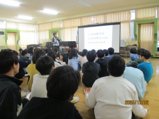 左は3年農園見学です。(農家の方の思いは?)「笑顔で野菜を食べてもらいたい。よい畑のために除草する。」 中は4年体育館プラネタリウムです。(印象に残ったことは?)「最後に流れ星がすぅーって。たくさん。次々と。」「星座がめっちゃ多くて、珍しい名前が多かったです。“髪の毛”という名前がありました。」 右は6年がん教育です。(学んだことは?)「鯨とか象とか、大きい体の動物ががんにかかりづらいです。がんに対抗する細胞が人の20倍。重症化しないです。」 極めた人とのかかわりから学べる人でありたいです。 5年軽井沢移動教室(3)