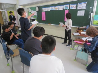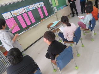 10日(水)はかしわ学級3〜6年の生活単元学習の授業でした。全学年による、かしわ思い出プロジェクトに向けた話し合いです。事前アンケートから7つのお店候補(マグネット釣り、お化け屋敷、スーパーボールすくい、わにわにパニック、射的、スマートボール、輪投げ)が挙げられました。小グループ(左・中)に分かれて、賛成理由や改善案・工夫などを発表し、聞きます。最後まで。拍手で受け止め。ていねいに。 「1・2年生にはやさしく怖がらせてあげる。」「やったことがないのでおもしろそう。」「下級生がわいわいできそう。」「打つのも楽しい。」「1〜4年でもたくさん点が取れそう。」「工夫して、作れそう。」などなど。小グループの意見を担当の先生が全体の場で報告しました。(右)これを受けて、各自が4つ投票しました。「みんなの意見がよかった。」「みんなの意見を聞けてよかった。」「話し合いで決めたことをやるのは、よいと思います。」合意形成は喜びです。 最後に投票結果の発表です。みんなが「うぉ〜!」どの店になったのでしょうか。 今と未来を手にする学びをつくります。 学びの基盤増進