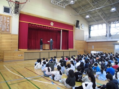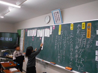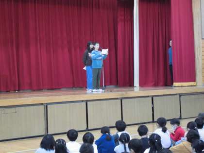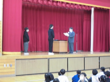 代表して6年生の二人が校長先生から表彰状を受け取りました。 また、図書委員さんからは、今日から始まった読書旬間について 話がありました。 学級会の授業