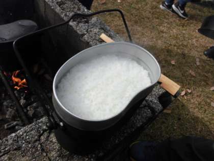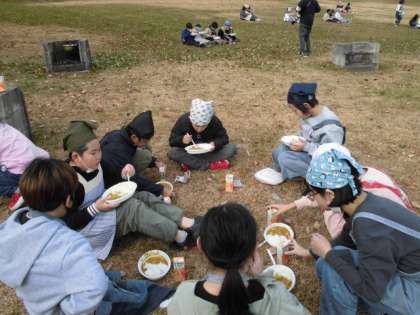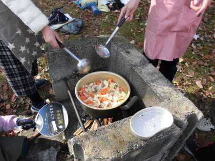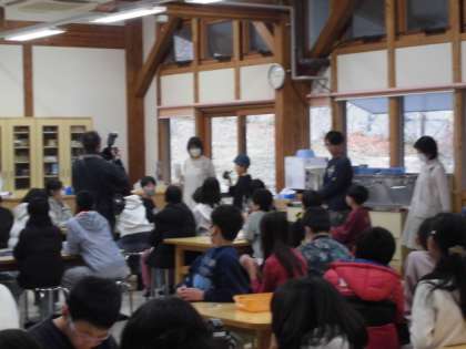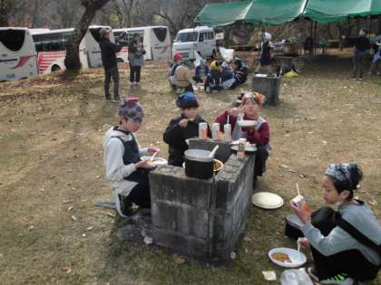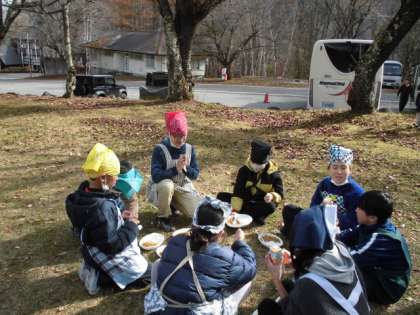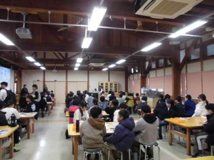 食事に関して、お昼の飯盒炊さんでは、こんなに全ての飯盒が成功しておいしいごはんとなる学校はない、と褒めてくださいました。 武石移動教室 2日目の夕食