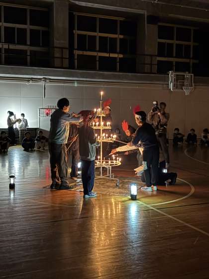 その他、もうじゅうがりへ行こうよ、インフルエンサーゲームをしました。 武石移動教室 キャンドルファイヤー