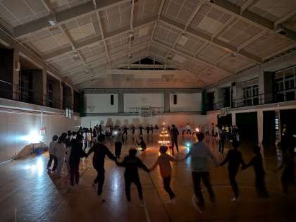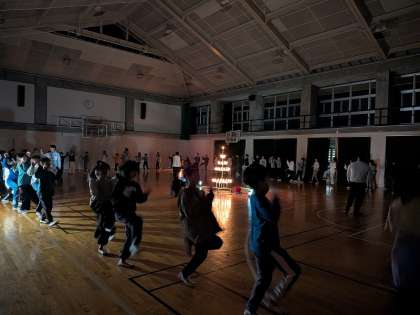 昨晩降り続いた雨のせいか、明け方はマイナスの気温にもなっており、空気がとてもひんやりとします。 昨晩のキャンドルファイヤーでは大盛り上がりとなり、興奮さめずなかなか寝付けなかった人もいたようです。 今日は8時に宿舎を出発します。 キャンドルファイヤー −4