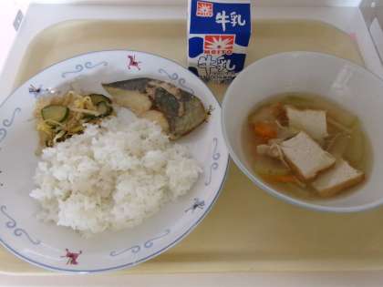 ・ごはん・魚の西京焼き・菊の花のポン酢和え・冬瓜の和風汁・牛乳
