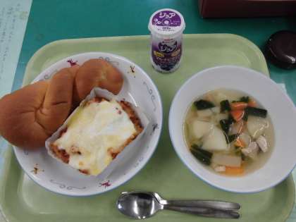 今日のメニューは、ミルクパン・米粉のラザニア風グラタン・鶏肉と野菜のスープ・ジョアでした。今日は久しぶりンパン食でした。ミルクパンは思ったよりも大きく、噛みしめるとほんのりと甘みが広がりました。ラザニアは具だくさんで、お腹にたまりました。言われないと米粉とは気付きませんでした。スープは、鶏肉と野菜の旨味が溶けだしていて、体に染み込んでいきました。ジョアは人気ですね。欲を言えば、もう1本飲みたいくらいでした。