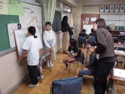 今日の5時間目に校舎内を回っていると、いくつかのクラスでキッズフェスティバルの準備をしていました。来週の水曜日が延期された実施日です。タイミング悪く体調不良が増加傾向にあるところに、5年生の移動教室が控えていたので延期となりましたが、今はだいぶ落ち着いており、このままならば実施できると思います。ちょっと気持ちが切れてしまった部分もあると思いますが、ここで切り替えて、もう一度楽しむ気持ちで準備を進めていきましょう。当日を楽しみにしています。写真は3年生の様子です。