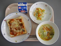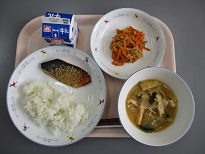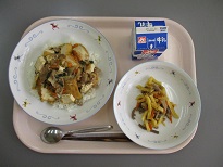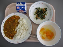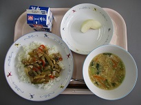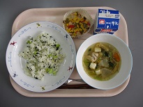 情報モラル教室 5年![]() ![]() ![]() ![]() 保教の会 Tシャツ受け渡し![]() ![]() 保教の会が中心になって15周年記念Tシャツを作成してくれました。本日はその受け渡しを行いました。カラーバリエーションがとても多いです。 盲導犬について 4年![]() ![]() ![]() ![]() 光二中学校説明会 生徒会![]() ![]() ![]() ![]() 春小まつり![]() ![]() それぞれのお店で、準備から片づけまで自分たちで行いました。将来、中学校や高校の文化祭で活躍する子が出てくると思います。 春小まつり![]() ![]() ![]() ![]() ![]() ![]() 春小まつり![]() ![]() ![]() ![]() ![]() ![]() 春小まつり![]() ![]() ![]() ![]() ![]() ![]() 何本たおせる!?ボウリング ダイヤをとりもどせ! もぐらたたき 春小まつり![]() ![]() ![]() ![]() ![]() ![]() 春小まつり![]() ![]() ![]() ![]() ![]() ![]() 春小まつり 全学年![]() ![]() ![]() ![]() 春小シアター〜学校を守れ!〜 障害物競走〜身体能力を発揮しGO!〜 9/30(火)の給食![]() ![]() ○なすとトマトのスパゲティ ○グリーンフレンチサラダ ○りんごケーキ ○牛乳 練馬区ではトマトもたくさん栽培されています。 トマトは「トマトが赤くなると医者が青くなる」ということわざがあるほど健康によい野菜です。赤い色はリコピンという色素によるもので、赤色の濃いトマトほどリコピンが多く含まれています。リコピンには、抗酸化作用があり、老化を防ぐ作用や、肌や皮膚を若々しく保つ美容作用、がん予防に効果があるなど多くの働きがあります。他にも、トマトにはビタミンC、ビタミンB6、カリウム、ペクチンなどの栄養素が豊富に含まれています。 9/29(月)の給食![]() ![]() ○ごはん ○ししゃもの南蛮漬け ○豚肉と大根のいため煮 ○太平燕(たいぴーえん) ○牛乳 今日は熊本県の郷土料理である太平燕を作りました。太平燕は、日本でアレンジされた中華料理の一種です。春雨スープにエビ、イカ、豚肉、野菜などの五目炒めを合わせ、揚げ玉子を添えた料理です。今日は揚げ玉子のかわりにうずらの卵を加えました。 中国の太平燕は、アヒルの卵が入ったワンタンスープです。それが、日本の熊本県に伝わった際にアヒルの卵の代わりに、にわとりの卵を、ワンタンの代わりに春雨を使うようになりました。 野菜と肉や魚介のうま味たっぷりの太平燕をぜひ食べてください。 9/26(金)の給食![]() ![]() ○チキンカレー ○ポパイソテー ○フルーツパンチ ○牛乳 ポパイソテーは、ほうれん草を使った炒め物です。 ポパイとは、アメリカのマンガから生まれたキャラクターで、強くて優しくて力持ちです。ピンチになると、缶詰のほうれん草を食べてパワーアップ!超人的パワーが出て、ライバルをポカンと倒します。 そのため、「ポパイ=ほうれん草」という連想が世の中に定着しました。 ほうれん草は、鉄分や、ビタミン類が多く含まれる栄養価の高い野菜です。もりもり食べてポパイのように強くなりましょう。 9/25(木)の給食![]() ![]() ○ゆかりごはん ○ふわふわ つくね焼き 〇どさんこ汁 ○牛乳 今日のふわふわつくね焼きは、鶏のひき肉に、はんぺんをつぶして混ぜ合わせています。ふんわり焼けたつくねに、しょうがのきいたかつおだしの あまじょっぱいタレをかけました。 どさんこ汁の「どさんこ」は、漢字で書くと「道産子」になり、「北海道人、北海道でうまれた物」という意味になります。「どさんこ汁」は北海道で取れた野菜等で作る汁です。じゃが芋、コーン、人参、玉ねぎを使い、みそで味付けし、最後にバターを落とします。 いつもと一味違うこくのある おみそ汁になります。 9/24(水)の給食![]() ![]() ○生揚げと豚肉のあんかけ丼 ○揚げじゃがきんぴら ○牛乳 「生揚げと豚肉のあんかけ丼」には、生揚げと豚肉のほかにも、玉ねぎ、にんじん、たけのこ、しめじなどたくさんの野菜が入っています。 これらの具材を炒め、しょうゆ、しお、こしょう、オイスターソースなどで味付けしました。少しだけ、ピリ辛になるように、トウバンジャンも入っています。 生揚げと豚肉は、血や、肉になる、からだを作る栄養素であるたんぱく質が、たくさん入っています。 みなさんが大きくなるのに、大切な栄養素です。もりもり食べて元気に過ごしてください。 9/22(月)の給食![]() ![]() ○豆若ごはん ○鮭の花かご焼き ○和風だしの野菜スープ ○牛乳 「鮭の花かご焼き」は、マヨネーズを使ったソースをぬった鮭に、ピーマン、黄色と赤のパプリカ、チーズをのせてオーブンで焼いて作りました。カラフルな色合いが花のように見える料理です。 鮭の身が赤いのは、鮭が食べている甲殻類プランクトンに含まれる、アスタキサンチンという色素成分によるもので、実は白身魚の仲間です。 主な成分のたんぱく質です。ほかに、貧血予防になるビタミンB12やカルシウムの吸収に働くビタミンD、DHAやEPAという脂肪酸、抗酸化作用のあるアスタキサンチンなど、たくさんの栄養を多く含んだ食材です。 9/19(金)の給食![]() ![]() ○ピザトースト ○フレンチサラダ ○バミセリスープ 