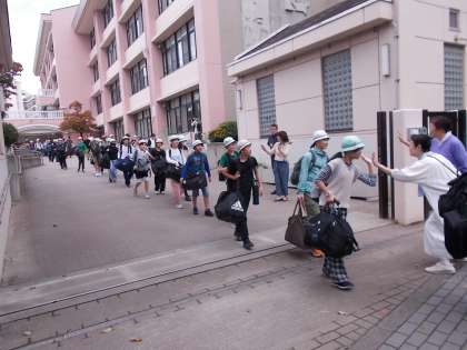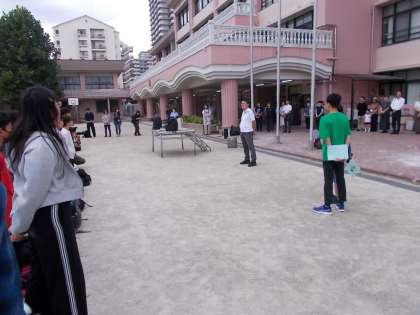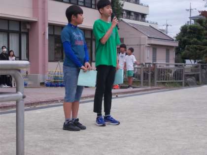 司会の二人も、立派に役割を果たしました。引率の先生方を紹介し「よろしくお願いします!」の号令を。続いて、お見送りに来てくださった家族の皆さんに「行ってきます!」の号令をかけました。