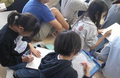 4年生は、6日(木)に白百合福祉作業所交流会を実施しました。5時間目には、作業所の職員や利用者の方々にご来校いただき、お話を伺いました。校舎からも見えるほど近くにある施設ですが、子どもたちにとっては知らないことが多く、メモを取りながら熱心に話を聞いていました。